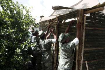 En cuestión de horas, un equipo de 10 personas -entre militares, voluntarios y expertos- trabajan codo a codo para construir cada módulo, la mayoría de los cuales son colocados en los patios de las viviendas.