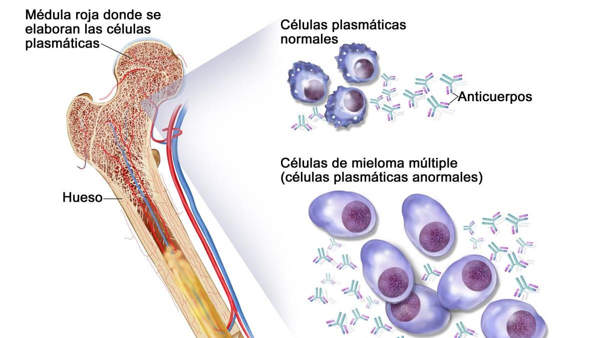 El especialista explicó que el mieloma múltiple es un tipo de cáncer que se produce por una transformación maligna de las células plasmáticas y puede afectar a múltiples órganos al mismo tiempo.